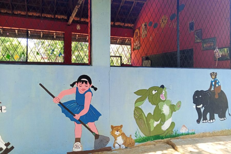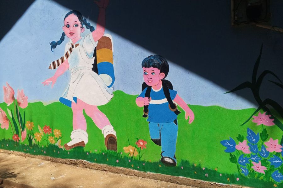 Beyond this, the initiative evolved into a broader community effort. The entire school building was freshly color-washed, and work began to restore and repaint the vibrant artwork on the walls—bringing new life and joy to the learning environment.